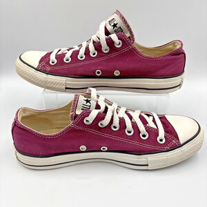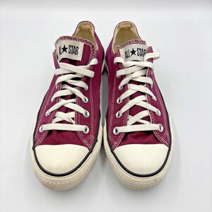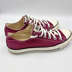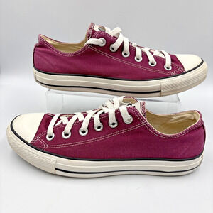Converse Chuck Taylor All Star Sneakers Purple/White, M 7; W 9 Size , Low Top. There are scuff marks on the toe caps, but shoes are in good condition. Inner and outer soles are in good, clean condition.