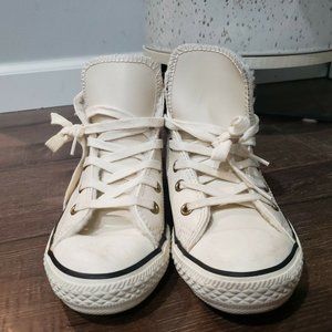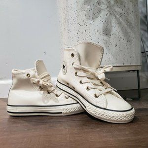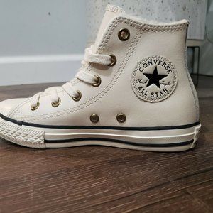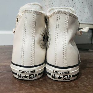 Converse Chuck Taylor All Star Street Mid Top Sneakers 13 KIDS cream Leather. Fleece lined. Perfect for winter!