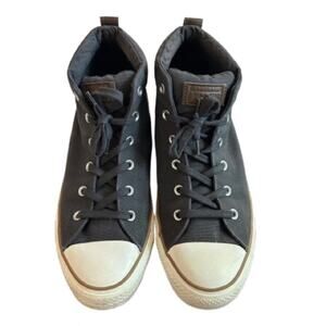 Converse Chuck Taylor All Star Street Mid sneaker - Storm Wind colorway. Size 12. Experience the iconic style of Converse with these mid top sneakers, featuring a sleek black and brown design. The classic canvas upper and signature circular logo patch make these shoes a timeless addition to any wardrobe. Perfect for casual outings, they offer both comfort and a distinctive look. Preloved in good condition with some signs of wear but still a lot of good use left.