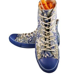 Step into style and comfort with these Converse high-top sneakers. Featuring a striking aquatic camo design in blue and green, they offer both durability and personality for any casual wardrobe. Rare