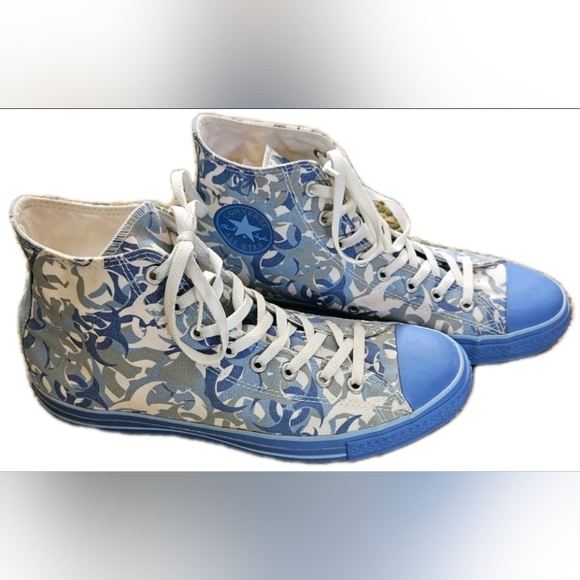 Converse Chuck Taylor All Star "Aquatic Specialty Camo" This "Aquatic Camo" or "Hazardous" print is no longer in production, making these a rare and vintage model. couple marks, could possibly be taken off, I haven't tried. Mens size 11 Women's size 13.