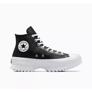 CONVERSE CHUCK TAYLOR ALL STAR LUGGED 2.0 LEATHER HIGH BLACK WHITE M 8.5 / W 10.5 BRAND NEW IN BOX /NO LID. SIZE 10.5 WOMEN'S. DESIGNED TO KEEP UP WITH YOU, WHATEVER THE WEATHER—THE LUGGED 2.0 RETURNS WITH A DURABLE, EASY-TO-CLEAN LEATHER UPPER. A BOLD, CHEVRON-INSPIRED OUTSOLE ADDS A LITTLE LIFT AND A LOT OF GRIP. LET'S GO. WHY YOU SHOULD BE DOWN * DURABLE LEATHER UPPER, WITH THAT CLASSIC CHUCKS LOOK * ORTHOLITE CUSHIONING HELPS TO PROVIDE OPTIMAL COMFORT * A MESH LINING FOR BREATHABILITY * EXAGGERATED, CHEVRON-INSPIRED TREAD FOR EXPRESSIVE STYLE * ICONIC CHUCK TAYLOR ANKLE PATCH AND ALL STAR LICENSE PLATE * SKU: A03704C #CONVERSE #LUGGED #MENSNEAKERS #LEATHERSNEAKERS