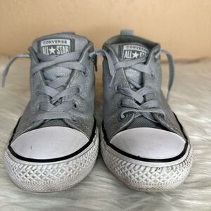 Converse Chuck Taylor All Stars Mid Tops Gray Size 3. Normal signs of wear. Please see all pics for condition.