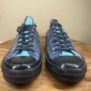This pair of Converse Chuck Taylor All Star low top sneakers is a must-have for any fashion-conscious man. The blue multicolor design is perfect for adding a pop of color to any outfit, while the stars theme gives it a unique touch. Made in China, these athletic shoes are of high quality and will last you a long time.