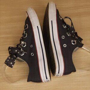 Converse girl’s Chuck Taylor charcoal grey low top sneakers with star ribbon laces 2. Gently used condition, only worn a handful of times.