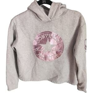 Converse Chuck Taylor Girls Foil Graphic Cropped Pullover Hoodie Grey XL