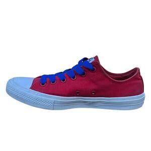 Converse Chuck Taylor II All Star low sneakers are the perfect addition to your shoe collection! These stylish sneakers feature a classic red and white color combination that will complement any outfit. These are a women's size 10.5. Equivalent to an EU 41.5.