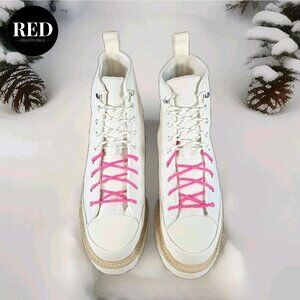 BRAND NEW - NWT - BOX - The Converse Chuck Taylor Ivory Off White Leather Crafted Boot is a versatile and stylish footwear option for both men and women. Made with high-quality leather, these boots feature a lace-up closure and a comfortable medium width. Perfect for various occasions including activewear, casual outings, or workwear, these boots are crafted with a solid white color and a classic high-top style. With a touch of flair from the Converse Chuck Taylor All Star product line and limited edition adjustable features, these boots are a must-have for any wardrobe.