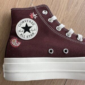 Stylish high-top sneakers made from durable canvas. Ideal for casual wear, offering both comfort and a trendy look. Take crafted style to new heights in these platform Chucks. Playful embroidery ups the crafted flair in a big way. Throw them on for a fun finish to your fave vintage 'fit, or whatever outfit you dream up.