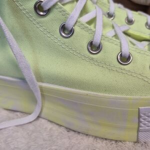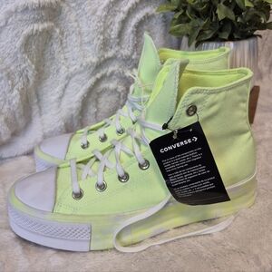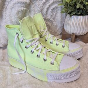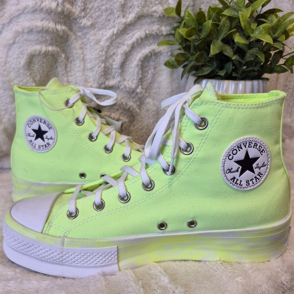 The Converse Chuck Taylor Lift Platform Sneakers in Volt Glow Yellow are a stylish and comfortable choice for women in size 9.5. These high-top sneakers feature a lace-up closure, cushioned foam insole, and rubber outsole for durability. Perfect for activewear, casual wear, and even skateboarding, these sneakers are designed for all seasons and offer a fun, colorful, and statement-making look. With a retro yet modern vibe, these Converse Chuck Taylor All Star sneakers are a must-have addition to any wardrobe. NEW WITH TAGS!