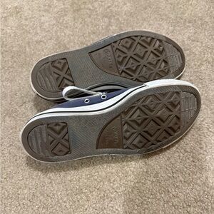 Blue Converse ChuckTaylor lowtops, size 9. Never worn.