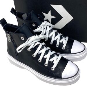 A lugged, lifted sole brings extra height and personality to the classic Chuck Taylor. A leather upper maintains the classic lifted look and helps accent the classics … like the star ankle patch and rubber toe cap. A pull zipper and heel tab allow for easy entry and the lugged sole delivers high quality tractions