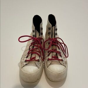 Beige GORE-TEX sneakers with striking red laces. Perfect for everyday adventures.