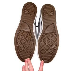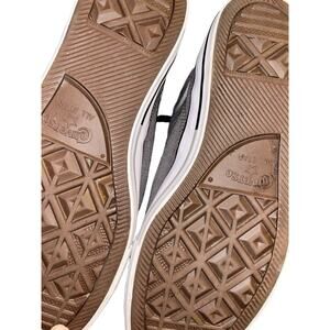 Elevate your sneaker game with these Converse Chuck Taylor All Star High Top Thunder sneakers. The gray canvas shoe features a solid pattern and is adorned with stars for a unique touch. The lace-up closure ensures a secure fit, while the rubber outsole provides durability for walking or school activities.
