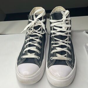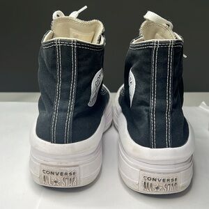 This is a great Converse Chuck Taylor Sz 10 All Star Move Platform Sneakers Black Canvas. Worn just a few times. Clean. No tears. No odors. Super comfortable.