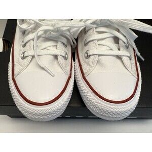 This product is a new pair of Converse Chuck Taylor All Star Madison Mid shoes in white, featuring a mid-top style with a lace-up closure. The shoes are designed for women in size 8.5 (UK size 6.5)Made of canvas, they are suitable for various occasions including activewear, casual wear, and workwear. The shoes also have a rubber outsole and are accented with the Converse logo, making them a stylish and comfortable choice for a range of activities such as walking, running, cycling, and more.
