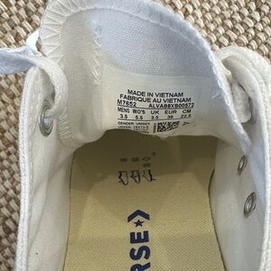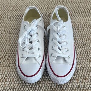 Converse Chuck Taylor White Canvas Sneakers with Red and Blue Accents