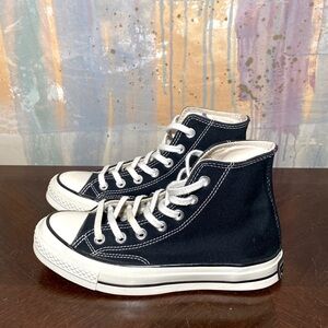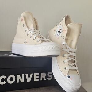 Classic high- top platform design. Durable canvas material. Iconic Converse logo on the side. A couple marks on one heel, but only worn a handful of times. Size 6 1/2.