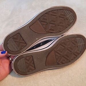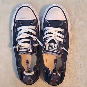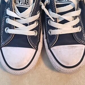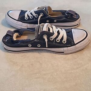 Converse Women's Size 6 Low Top Sneakers Chuck Taylor All Star Shoreline Slip on in Athletic Navy. Featuring Durable Stretch Canvas Upper For That Classic Chuck Look and Feel. OrthoLite Cushioning Helps To Provide Optimal Comfort. Fixed Laces, Stretchy Collar and Heel Loops for Easy On And Off, Ultra-Low Profile for Maximum Flexibility. Iconic All-Star Tongue Label and License Plate. The Toe Box Needs to be Cleaned Up a Bit, But Otherwise, These Sneakers are in Great Condition!