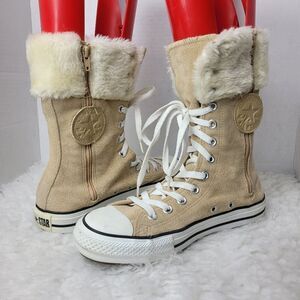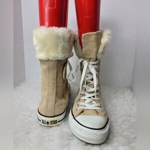 Converse Chuck Taylor Xh Women's Sneaker Size 7 Fur Cuff Tan Suede Shoes Good Condition See Pictures For More Details.