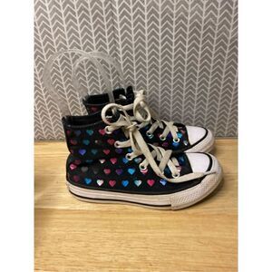 Converse Chuck Taylor High top Black with metallic heart Little girl shoes Size 11 1/2 Great, preowned condition