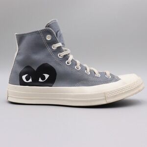 Gently Used Converse Chuck Taylor Leather High Top Chuck Taylor Sneakers. These are unisex, men’s 9 or women’s 11. Upper is leather and dusty army green I’d say. White soles. Some signs of wear but overall in great shape!