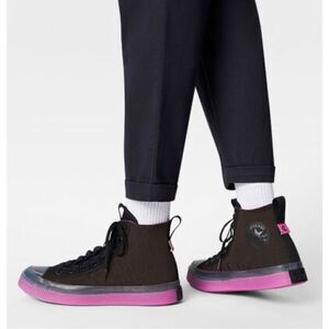 High-top sneaker with stretch canvas upper made from cotton canvas