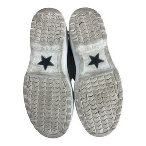 The Converse Chuck Taylor All Star Lugged Lift High Black Sneakers in size 5 feature a round toe shape and lace-up closure, making them suitable for activewear and casual occasions. Made of canvas with a rubber outsole, these sneakers have a low heel height and zip closure for easy wear. The high-top style and logo pattern add to the colorful and star-themed design, catering to young boys who enjoy walking and skateboarding. These athletic shoes from the Converse Chuck Taylor High model line are a stylish and versatile option for kids in the summer, fall, and spring seasons.