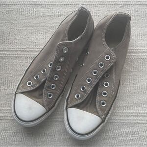 What I Love About It: Cool gray CTAS low top sneakers. No laces, but easy enough to find some. Classic chucks!