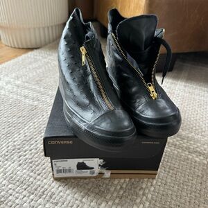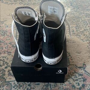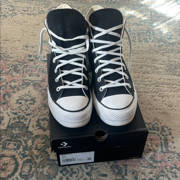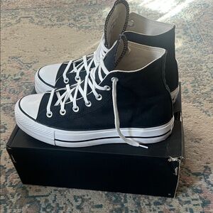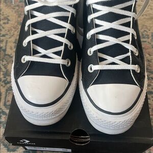 Timeless black high-tops with white accents. Signature Converse style. Platform sneakers that are super comfy. Good condition, some normal slight wear on the bottom