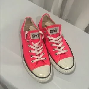 Classic low-top canvas sneakers in neon pink. Lightweight design with durable rubber toe cap and non-slip sole. Cushioned insole for everyday comfort. Easy lace-up closure for a secure fit. Vibrant pink color offers a pop of “ look at me” color to any outfit