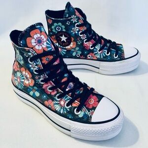 Converse Cons Zakim Ox floral low top skateboard sneakers. Black with Multi color tropical floral pattern all over with Black leather heel tab and rubber soles. Size 11 with light surface wear but otherwise in great used condition.