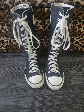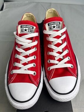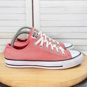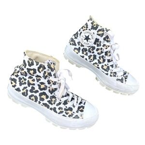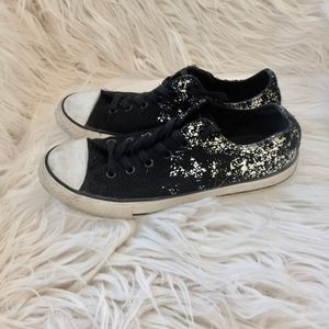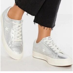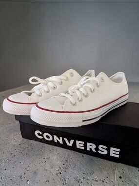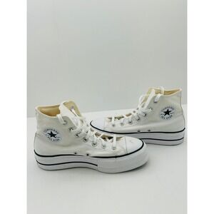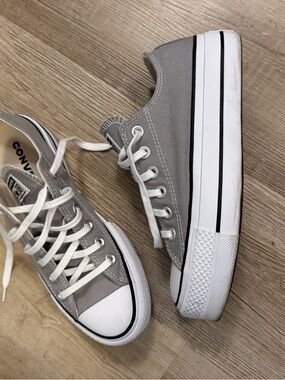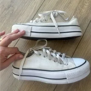 Classic low-top canvas sneakers by Converse. Thick platform sole for added height. Metal eyelets and lace-up front. Clean, minimalist styling for everyday wear.