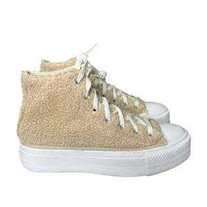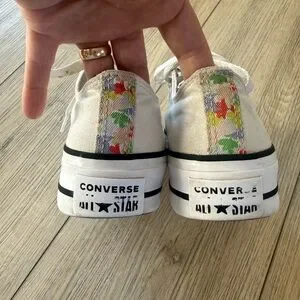 Converse Cream Canvas Platform Sneakers with Floral Back
