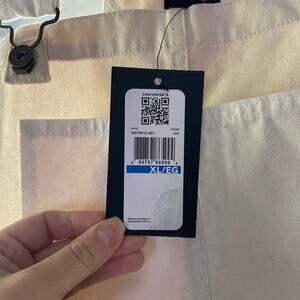 Brand new with tags, these Converse cream overalls offer a fresh, modern twist on a classic look. Made from sturdy cotton canvas with a soft cream tone, they feature adjustable shoulder straps, metal hardware, and both front and back patch pockets in a contrasting white. Stylish and functional for everyday wear, these overalls are perfect for layering with tees or crop tops. Relaxed fit, size XL. Great for casual, streetwear, or skate-inspired looks. Unisex vibe.