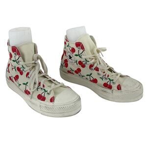 Converse Cream/Red Cherry Print Canvas Hi-Top Sneakers Women’s Size 9 Preowned