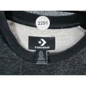 Converse Crop Sweatshirt Womens Small *Flaw Black Silver Foil Block Letter Logo
