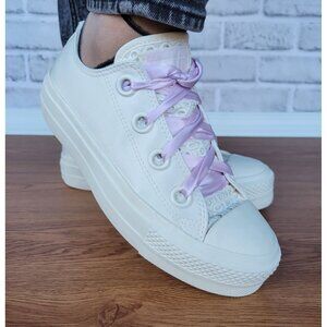 ⭐Converse Ctas Lift OX Low 7 Womens Shoes Embroidered Floral Beige Pink A10301C⭐