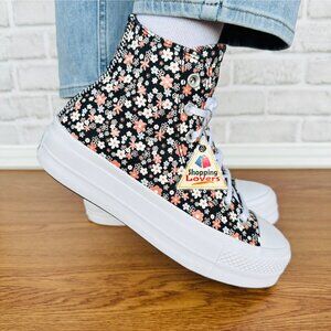 ⭐Converse Ctas Lift Platform Hi Sz 7.5 Women Shoes Flowers Sneaker Black A14264C