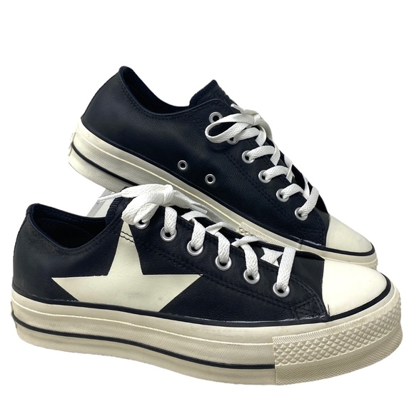 Converse Ctas Lift Platform Leather Shoes Low Momen's Black Custom 568162C-WWB