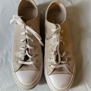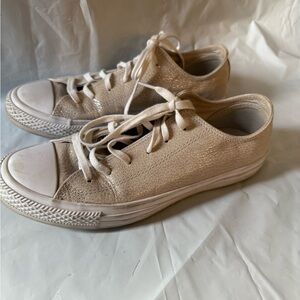 Converse Ctas OX Leather Sparkle Pale Putty Silver Sneakers Women's 7.5