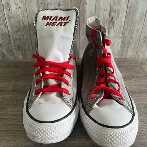 Miami Heat custom Converse high tops. Miami logos on the tongue, sides and inside. Very lightly worn. Size 11