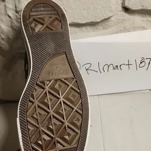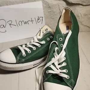 Dark green Converse sneakers. Features a durable white sole. Ideal for everyday style.