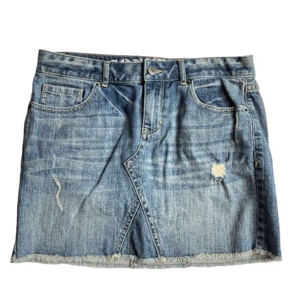 Converse Denim Skirt 28 Miniskirt Mini Short Jean Distressed Light Wash Frayed Hem