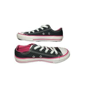 Converse Double Tongue Low Top Black Pink Sneakers Girls Juniors Size 1 654365F