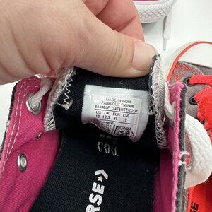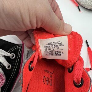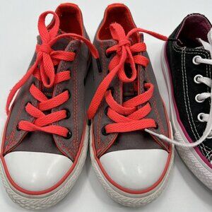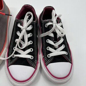 Two pairs of converse size 13 - some wear as pictured. Black with pink and grey with orange.