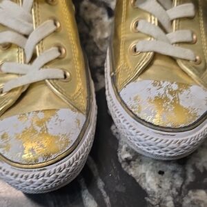 Bold gold sneakers with classic Converse branding. Perfect for making a statement.
