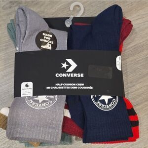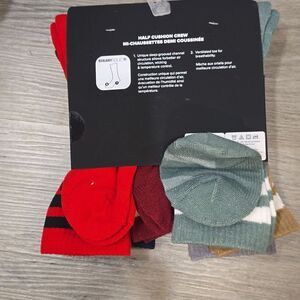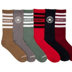 Stylish crew socks in tan, gray, green, red, black, and burgundy. Comfortable and versatile for daily wear.