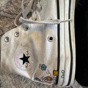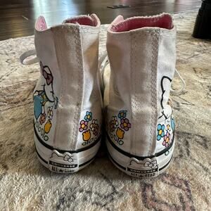 Super cute Hello Kitty collab Converse Chuck taylor sneakers in a women's size 6. They're gently used, in good condition, some light marks present as pictured. Overally great pair of sneakers! Super cute!
