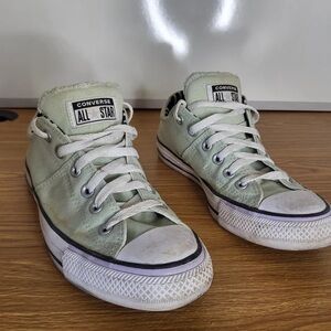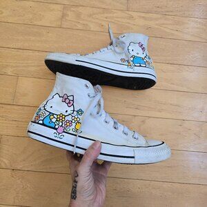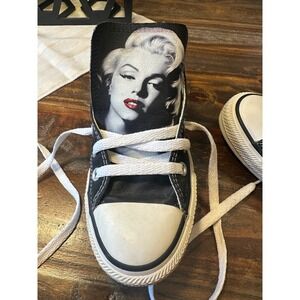 USED IN GREAT CONDITIONS- SEE PHOTOS. The product is a rare pair of Converse Hi Top sneakers featuring a graphic print design with the character "Madison" from Millie Bobby Brown. The shoes are in US women's size 9.5 and men's size 7.5, with a standard shoe width and made of canvas material. These limited edition sneakers belong to the Converse Chuck Taylor All Star product line and are customized to showcase the Millie Bobby Brown theme.